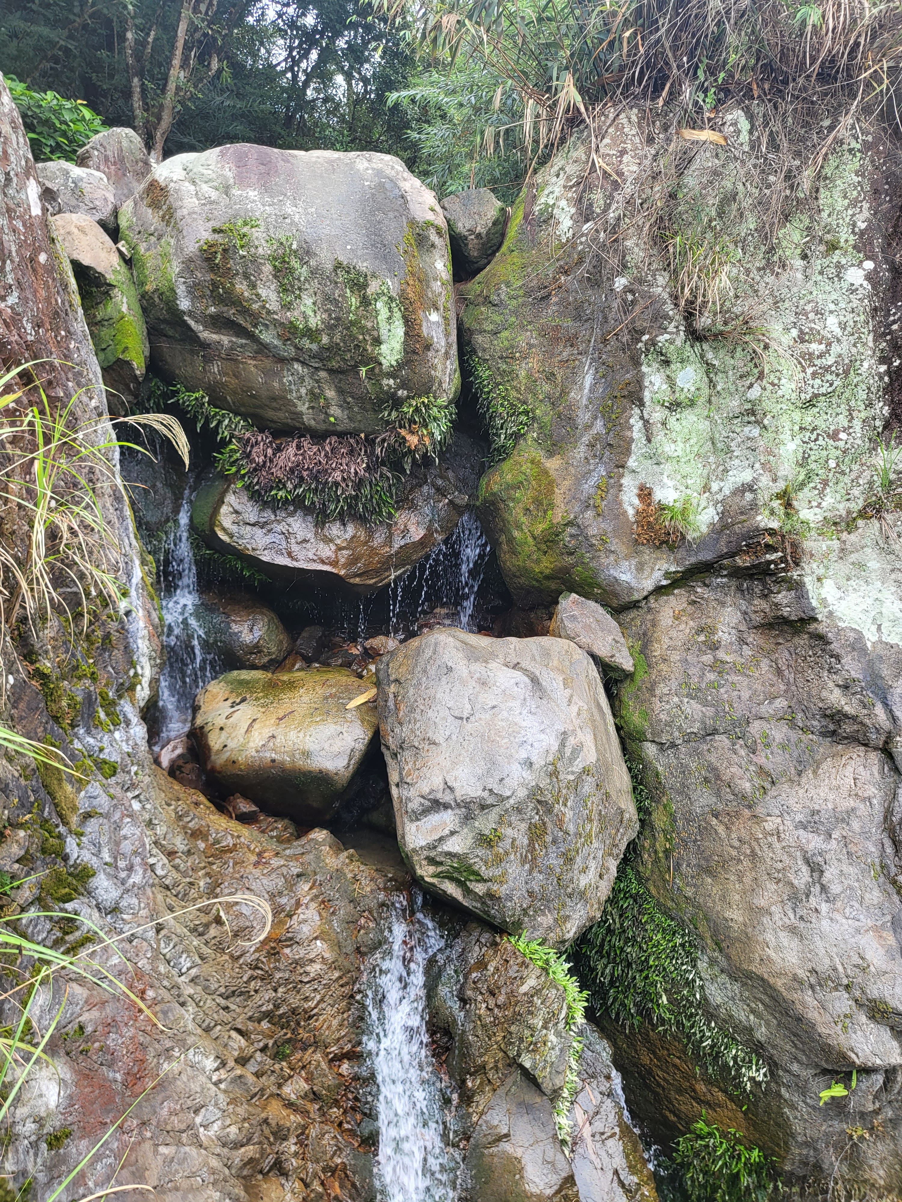 由於第一次來,財哥還是繼續往前,此時石頭上有長青苔,財哥還落水了2次。